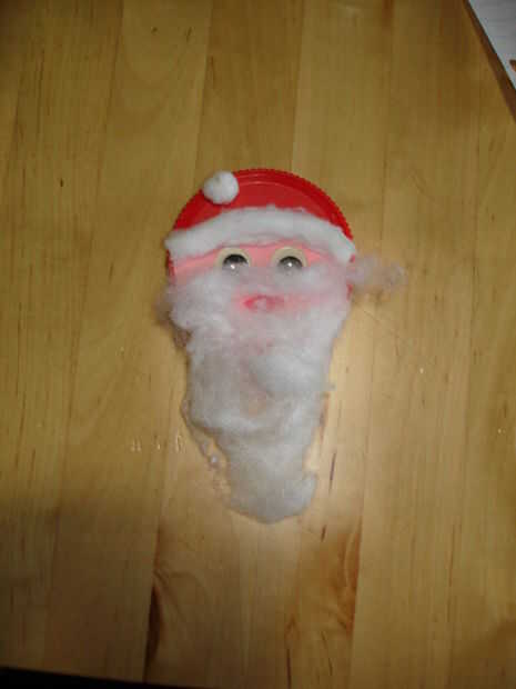 Arrancar un pedazo de forma de la barba de fiberfill. Pegar en la cara de Santa.
