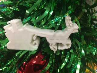 Hice el trineo y corredores utilizando el software de Autodesk 123d. Corte los orificios dentro del trineo con TinkerCad. Santa fue modelado en arcilla y escaneado. Él entonces se fusionó con el trineo con TinkerCad.