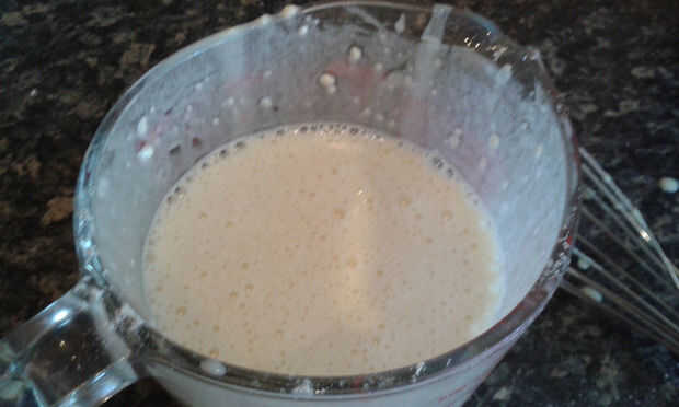 * Usted debe terminar con una agradable mezcla suave que contiene una gran cantidad de pequeñas burbujas de aire de batir.