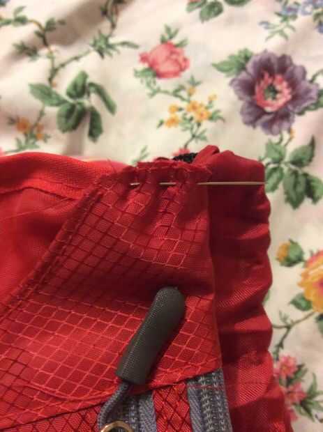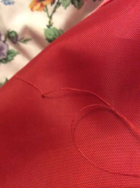 Una forma muy efectiva de hacer esto es por la puntada corriente. En primer lugar, u Enhebre la aguja y asegúrese de no cortar el hilo de las heces todavía. Entonces, hacer un nudo en un extremo del hilo. Mueves la aguja encima y debajo de la tela varias veces. Hale la aguja completamente a través. Si desea continuar, tire de la aguja para que tenga más hilo y pasar la aguja encima y por debajo otra vez.