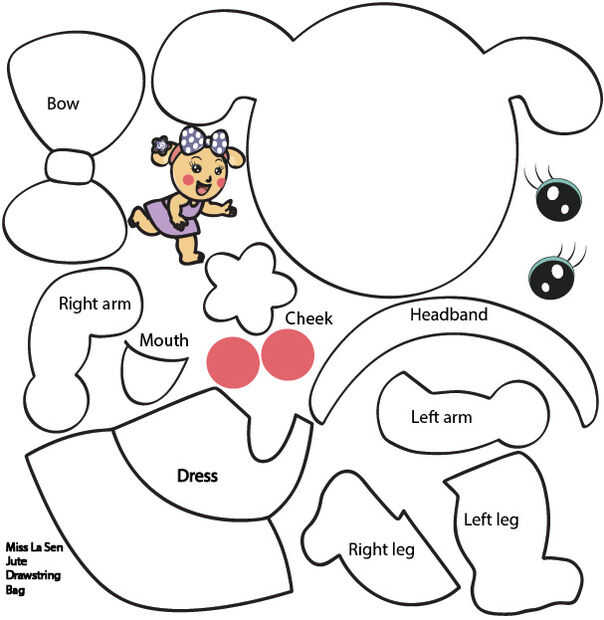 Miss La Sen es personaje aquí story juego de mesa, juego para móviles.Paso 1: Descargar este patrón para Miss La Sen forma e imprimirlo en papel de tamaño A4.Paso 2: Cortar 2 hojas de tela de arpillera en el rectángulo de 36cm de ancho, 43 cm de alto