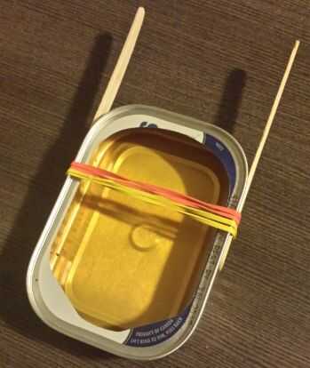 Ahora deja ir. Si caen los palitos el envase, sentir mal acerca de cómo son, superarlo, entonces lazo otra vez las bandas de goma alrededor del envase, pero hacerlo bien esta vez.