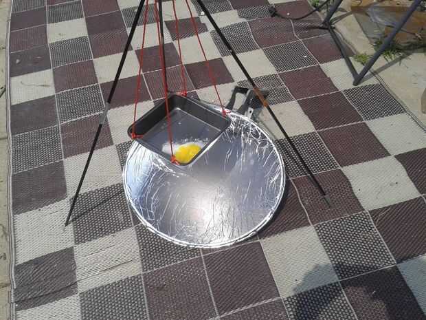 Coloque la bandeja en el óptimo punto focal centrado en la parte inferior de la bandeja para obtener mayor cantidad del rayo soles que se centró en el centro de la sartén.