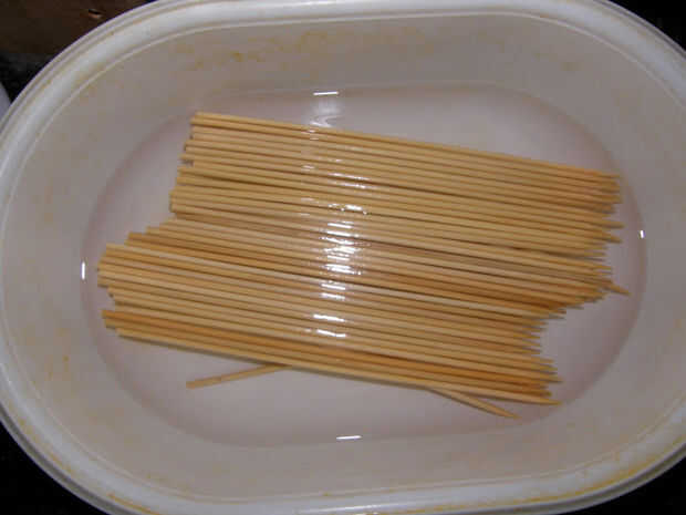 Si usted está utilizando pinchos de bambú para el satay, empápelas totalmente mojado para por lo menos 30 minutos, es mejor