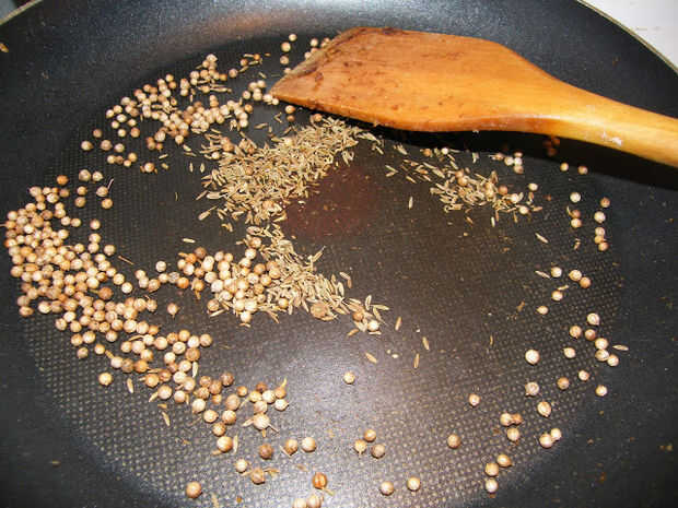 comino de semillas y 1 cucharadita a los cilantro 1 cucharada (seca fría hasta fragante - friendo sin el aceite o grasa)