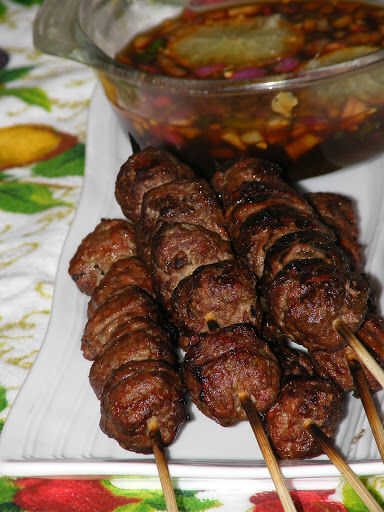 Satay de la parrilla sobre brasas de carbón vegetal, girando de vez en cuando, hasta que estén cocidas.