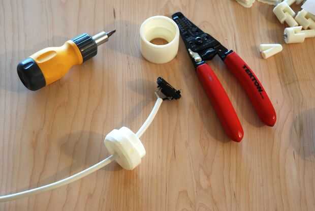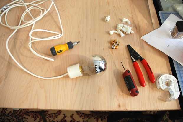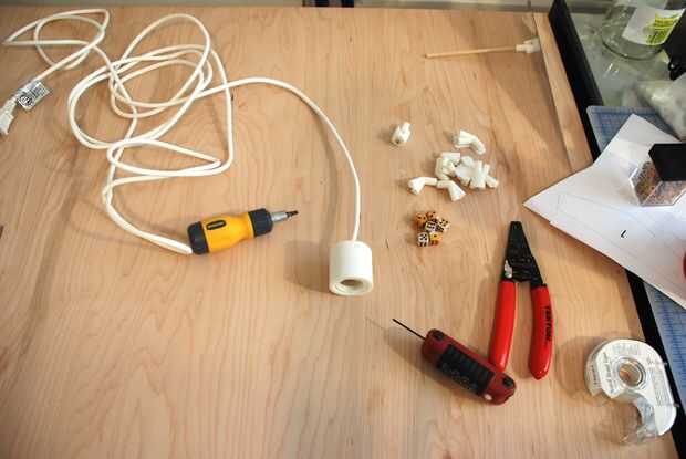 A continuación deberá conectar su portalámparas. Desmonté una lámpara colgante cable de ikea y saca el cable y la parte de plástico con los contactos de cobre.