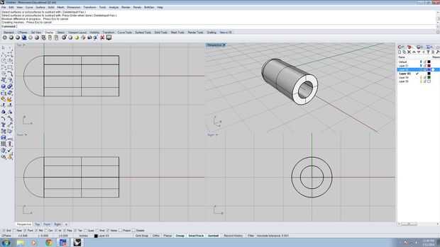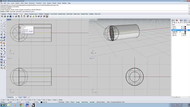 Puede utilizar mi archivo de Rhino cerrado para saltar al siguiente paso o preparar los cilindros por su cuenta. (Nota: Si no está utilizando Rhino, algunos de los comandos pueden tener nombres diferentes)