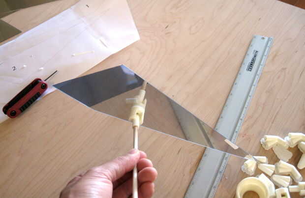Después de tener las articulaciones montadas, utilice los tornillos tapa 6-32, ¼" botón para adjuntar cada uno de los espejos a las articulaciones. Use la llave hexagonal para apretar los tornillos.
