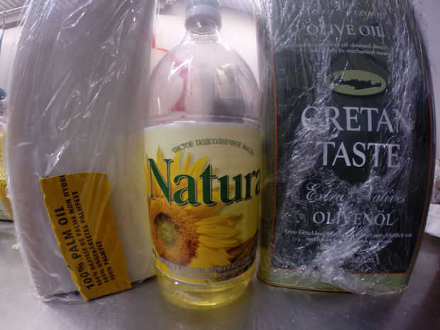 • Combinar 250 gramos de 100% aceite de palmiste (esto debe ser sólido a temperatura ambiente), 175 gramos de aceite de girasol y 75 gramos de aceite de oliva en otra olla y calor en una temperatura media hasta que todos son líquido y combinados.