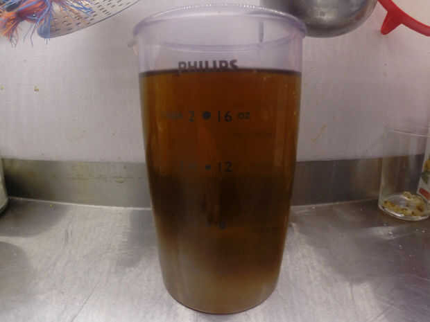 En este punto debe ser un suceso de la reacción química entre la su reducción de pino y la lejía que causan la mezcla a ser tibio/caliente. Mientras esto sucede, se reúnen sus grasas: