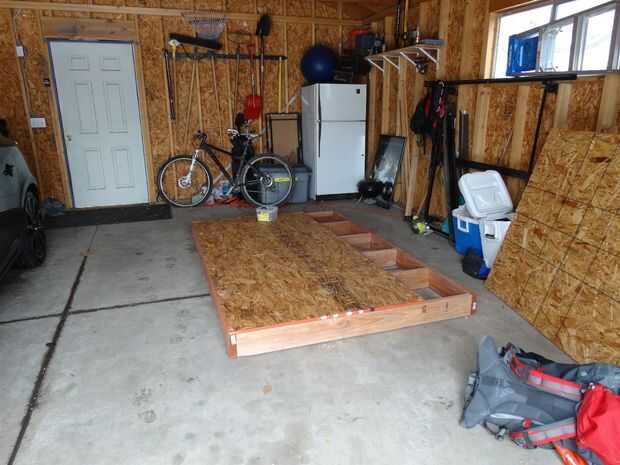 Para construir la planta que utiliza presión 2 x 6 viguetas espaciadas 18". La base de la sauna es de 8'x 6'6 ''. Entonces usé 3/4 osb para la tarima.