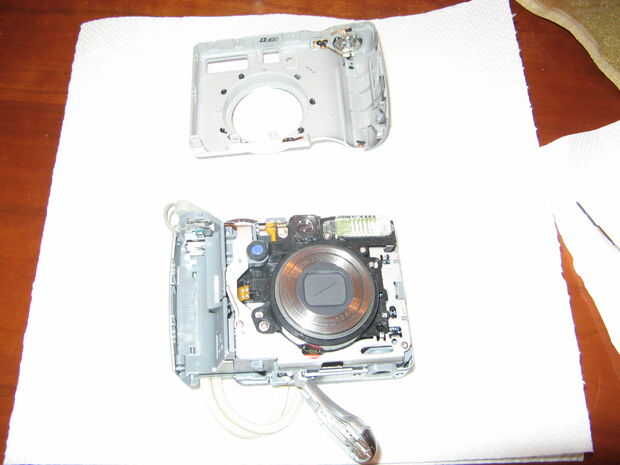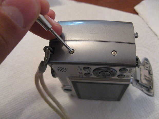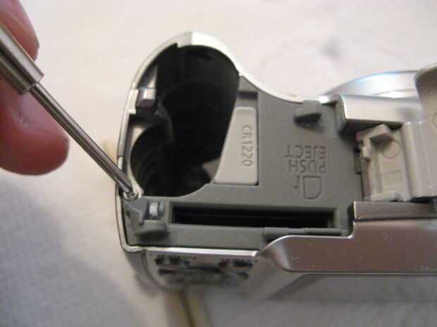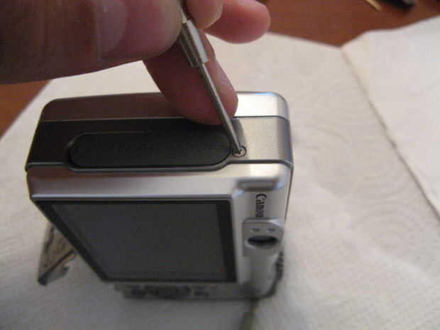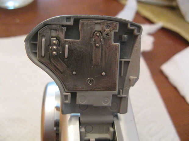 1. exponer los contactos con el destornillador (en mi modelo que tenía que abrir toda la cámara).
