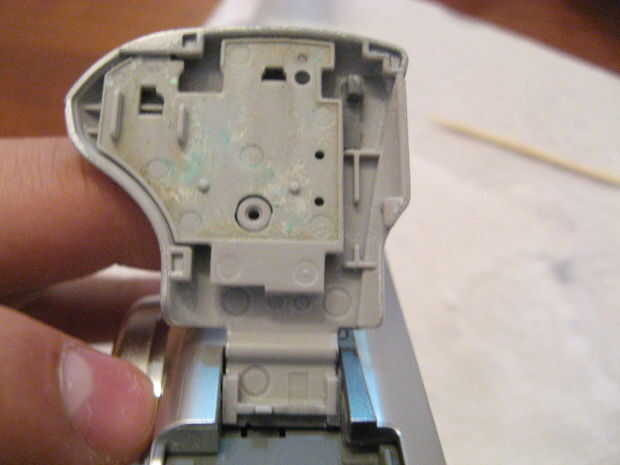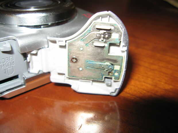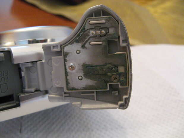 Mi cámara sufrió de un mal caso de la corrosión en los contactos eléctricos de baterías (no deje pilas por mucho tiempo...). Esto causó que la cámara se apague siempre y mostrar el letrero de "cambie batería" (aunque sólo los cambié).