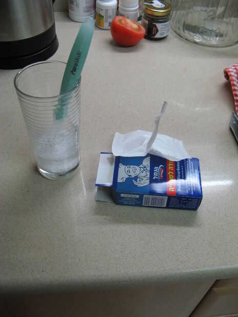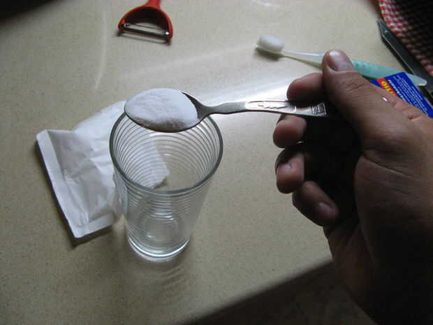 2. Sumerja el cepillo en el agua con el bicarbonato de sodio.