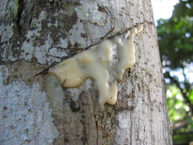 Sap de fruta de pan de la cosecha es simple. Todo allí está a él, es encontrar un árbol de fruta de pan y dándole una buena tajada con el machete. (Podría usted quiere lavar su machete antes de usarla. Si el machete es como la nuestra, mata serpientes malas hierbas alrededor de los árboles, chuletas de árboles, cava agujeros y sobre todo lo demás.) Fruta de pan más jóvenes árboles parecen tener un poco más sap en ellos así que si usted tiene una opción usted puede elegir una versión más joven. No te preocupes, no duele el árbol a menos que sea muy pequeña - aunque dudo que usted debe hacer esto en árbol de otra persona. Una vez picado, el árbol debe comenzar que exuda abundante savia blanca. Eso es todo! Dejar allí la savia para un día, y curará en un lío pegajoso.