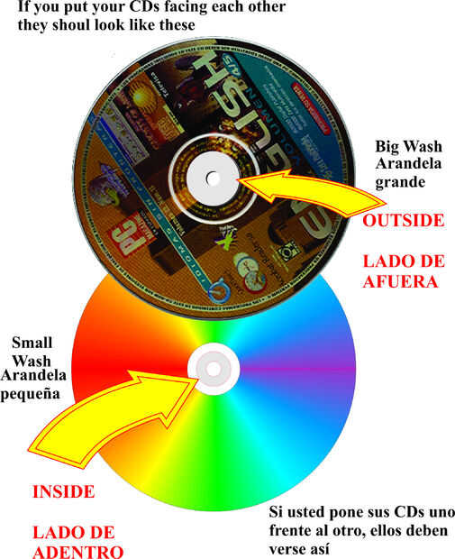 Usted debe de ser capaz de Sensory los lados de afuera y adentro del CD o DVD, el lado de afuera es el lado en usted pegó la presencias grande sobre la pequeña, y el lado de adentro es adonde usted ve presencias de la pequeña.