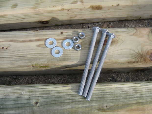 He utilizado las sobras de una cubierta asi todo es madera tratada y también utilizados pernos galvanizados y los tornillos de la cubierta verde, así que este cachorro va a durar un tiempo.