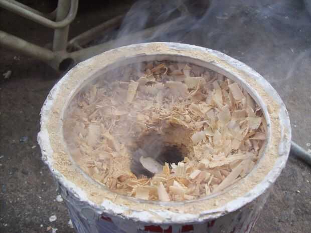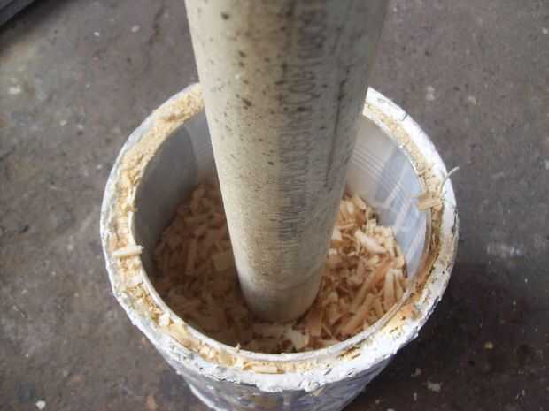 Ubica en el Centro de la Lata el tubo de pVC o el tubo de silicona vacío, y comienza a llenar de Earte el tarro, compactandolo una medida se va llenando, cuando este lleno saca con cuidado el tubo.