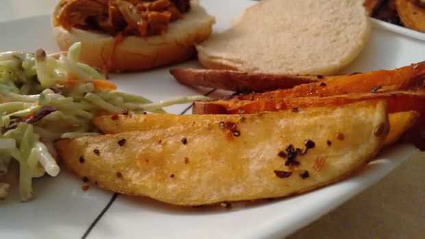Ahí lo tienen! Ligeramente crujientes en el exterior, al horno papa tierno en el interior - una fritada de acogedor horno de dedo pares para arriba muy bien con ensalada de col y tirado sándwiches de carne de cerdo y apenas sobre cualquier cosa!