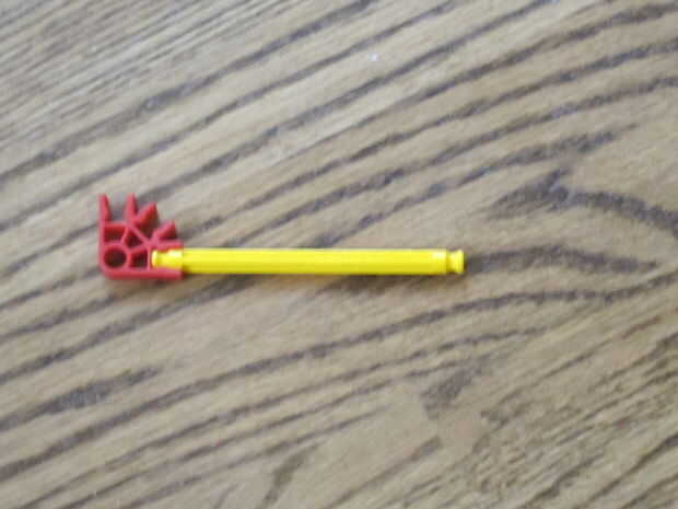 Tire el RBs BAKE (hornear) al conector del copo de nieve e insertar una barra amarilla con un conector rojo en la ranura en el barril.