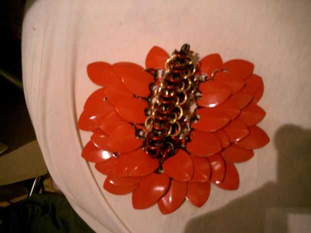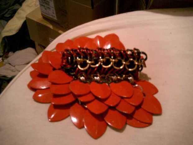 Segundo paso fue hacer charreteras de suma. Usa tiras cortas de Rondo otra vez como base. Luego añade escalas al conjunto de tres anillos de cada unidad de Rondo, i también añadido 2 x 3 a dos anillos grandes doblados en un extremo de la franja de Rondo y una escala para cada tres anillos más. Manera de comenzar a tejer la escala-mail ronda estas charreteras. Agregar 5 líneas de escala-mail - que debe hacer una cosa redonda para un hombro redondo