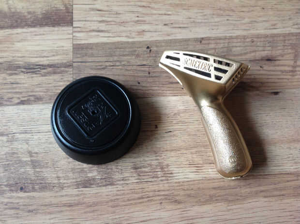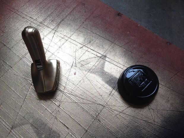 SprayPaint los dos gatillo mitades en oro y la base del negro (tapa de Nescafe café) Trofeo de spraypaint.