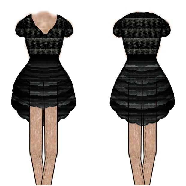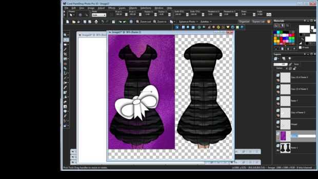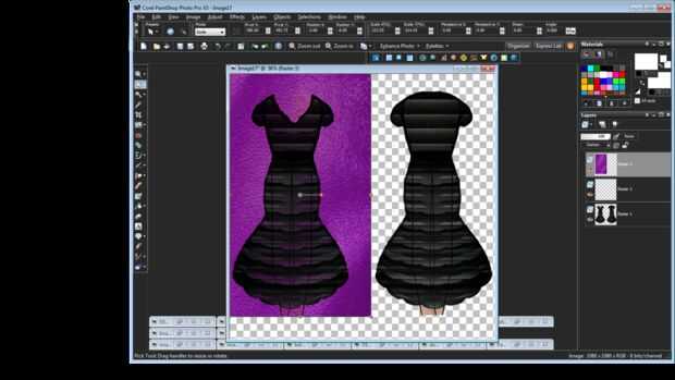 3. crear una nueva capa de la textura de la prenda. Elegir una textura que ya tenía y agregó a mi diseño. Con la ayuda de la varita mágica pude recortar alrededor de la plantilla del vestido en la capa de textura. Hice una capa de color y recortada abajo para caber en el centro de creación el color bloquea efecto luego usé mi varita mágica para hacer un cultivo perfecto de los bloques de color de cuello vestido de Gasa.