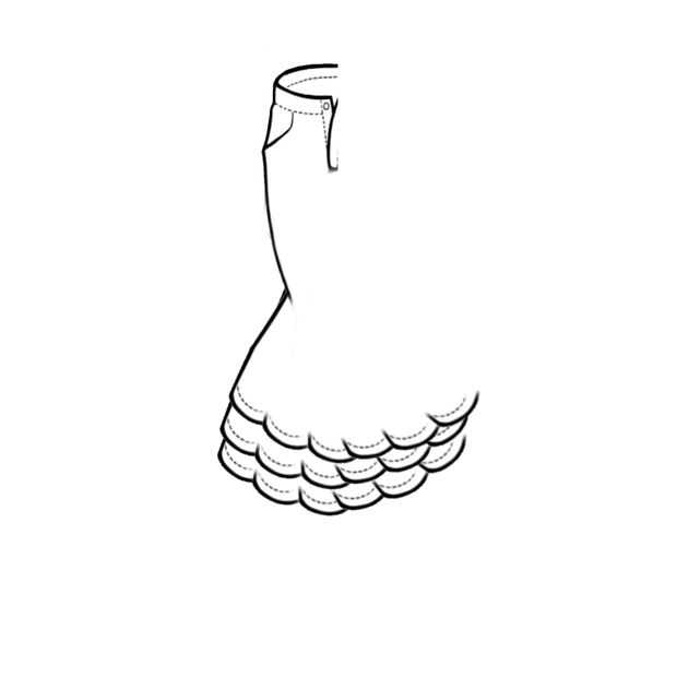 2. Seleccione las capas duplicadas de la mitad superior y mitad inferior (vista de la vista y la espalda frontal) de la plantilla con capucha. De cultivo a 80% de la manga. En el duplicado de las bragas de capas (vista frontal) de los cultivos hacia fuera la parte entera derecha/izquierda de los pantalones entonces borra la mitad superior de la pierna de los pantalones que ha dejado. Esto ayudaría a formar los pliegues del vestido. No desea que forma la parte superior del vestido justo encima de la cintura y forma la parte inferior la mitad del vestido (plantilla de pantalones) para conectar la mitad derecha donde termina la mitad superior.