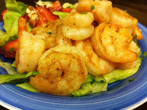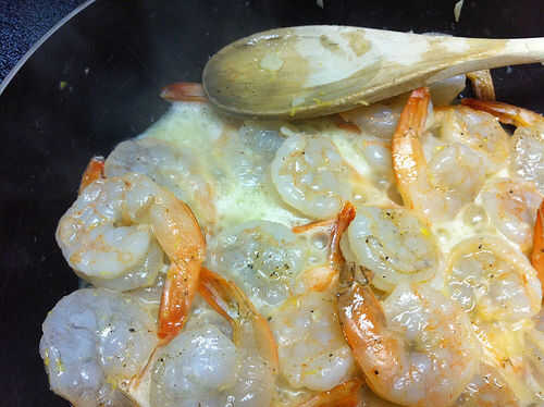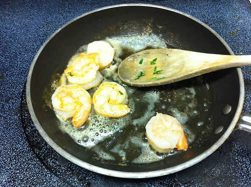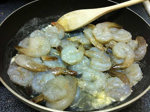 Asegurarse de que no hay mucho líquido; no quiere hervir o al vapor el camarón aquí.