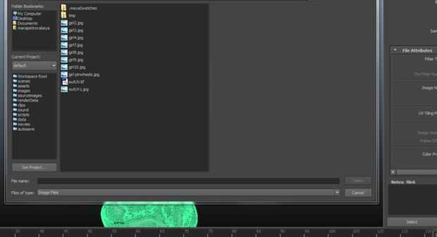 Con el modelo seleccionado podemos ver propiedades del material en el lado derecho en el editor de atributo. Si nos fijamos en el deslizador de Color podemos ver la plaza a cuadros a la derecha (Ilustración2). Si la prensa los cuadros cuadrados en el lado derecho del control deslizante de Color abre el menú de crear nodos de Render que aparece (ver foto 3). En las vastas opciones elegimos la opción de archivo para cargar nuestro archivo en el modelo. El menú de archivo se abre en el lado derecho (pic4). Presionamos el signo amarillo carpeta para elegir el archivo para subir.