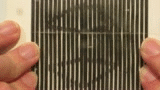 La manera en que esto funciona es relativamente simple. Tiene una 'pantalla' que se compone de barras negras verticales con espacios claros entre ellos. La barra de ancho debe ser un múltiplo de los espacios claros, que le dará el número de fotogramas disponibles. La idea es que la pantalla se coloca sobre su dibujo, que se compone de líneas verticales. Las líneas visibles en los espacios entre las barras conforman el primer fotograma. La pantalla es entonces resbalada encima para que el siguiente conjunto de líneas dibujadas son visibles. De esta manera, usted puede capturar varios cuadros en un dibujo compuesto de conjuntos de segmentos de línea vertical que se revelan en orden por la pantalla. Son más anchos de las barras, más marcos puede tener pero también la baja resolución cada fotograma será ya que las diferencias serán más lejos aparte. Este efecto se basa en la capacidad del cerebro para rellenar las partes que faltan del chasis (donde están las barras) así si sus diferencias son demasiado grandes eventualmente fallará. Usted puede como funciona esto más fácilmente en el gif produjeron en mspaint con barras rojas cubriendo un dibujo negro. Aunque el dibujo actual tiene muy poca información para cada marco, el cerebro rellena las piezas perdidas y terminas viendo una forma de negro completada para cada uno.