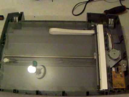 El siguiente es la capa superior que protege el conjunto interior funcionamiento del escáner, retire ésta con cuidado que podría tener el vidrio que se pega en un lado con el pegamento, suficiente adhesivo para moverse cuando se mueve pero no lo suficiente para mantener en su lugar... (si usted no tiene cuidado el cristal caerá de la tapa y la rotura)