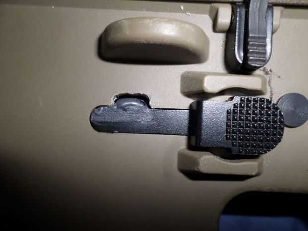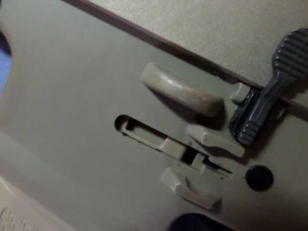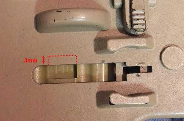 Algunos de ustedes sabrán la caja de engranajes en SCAR de VFC se sienta ligeramente por encima de TM M4 clones. Esta es la razón por qué después de terminar la modificación mencionada, algunos compartimientos tendrá algún juego vertical, así como problemas de alimentación. En mi caso, el juego vertical era tanto que mi G & P 130rd mid caps se negó a alimentar. Pensé acuñar mis revistas, pero tendría que acuñe los diez de ellos, y esto podría causar problemas cuando utilizo en mi M4s. Después de una cuidadosa consideración, he decidido que modificando el recibidor inferior y equilibrado el mag catch sería la mejor solución. En primer lugar, inserte una revista en la revista así. Mida y marque la cantidad de juego entre la muesca de la revista y la captura de mag (superior y mediados fotos). Utilice una broca de taladro de diamante Dremel para cortar una ranura pequeña en el recibidor inferior, para que el calce en el retén mag no impediría el movimiento (foto inferior).