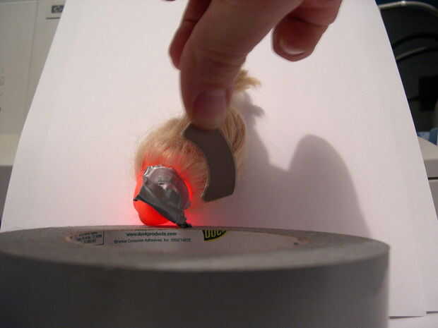 Trate de apuntar su led que ilumina toda cabeza de Barbie, en lugar de sólo su nariz. (Si tienes una muñeca de Lindsey Lohan, iluminando sólo la nariz puede ser más apropiado.)
