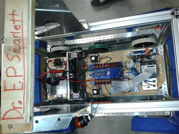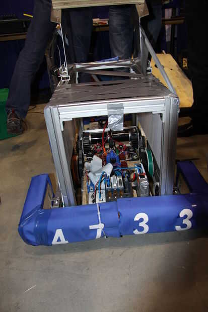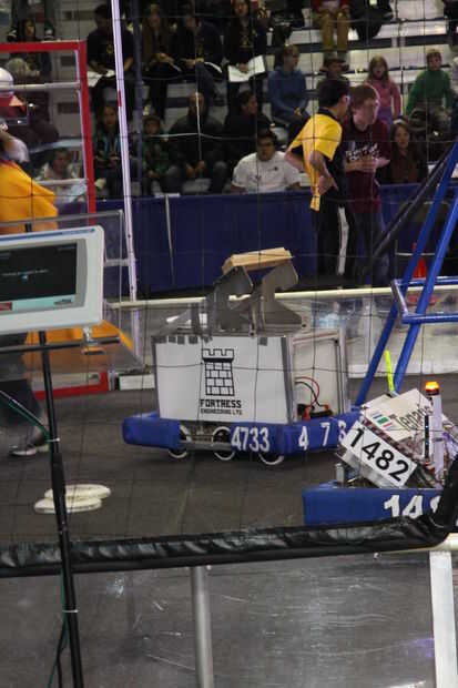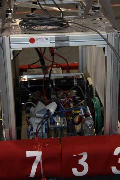 Hicimos un robot de 95 libras capaces de comportamiento autónomo y comunicaciones inalámbricas. Nuestro Robot, antes del accidente, fue capaz de subir una pirámide metálica grande, mantener y entregar discos voladores y la liberación en el lugar correcto. También fue capaz de interferir con el funcionamiento de otros robots usando una red grande que recoger discos voladores de opositores y añadirlos a nuestro envase. Después del accidente sólo fuimos capaces de subir el primer peldaño y marcar discos voladores durante el período de tiempo autónomo.