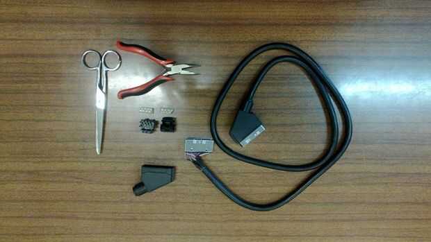 Es un cable muy familiar, con la mayoría de europeo VCR/reproductor de DVD. Tiene 21 pin pero necesitamos solamente 5 de ellos. En mi aplicación voy a utilizar 6, así que tengo un par extra para enviar otra señal, por ejemplo el teléfono o el IR para el mando a distancia.