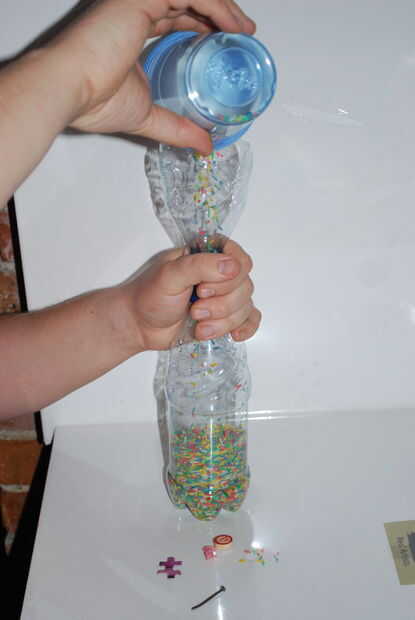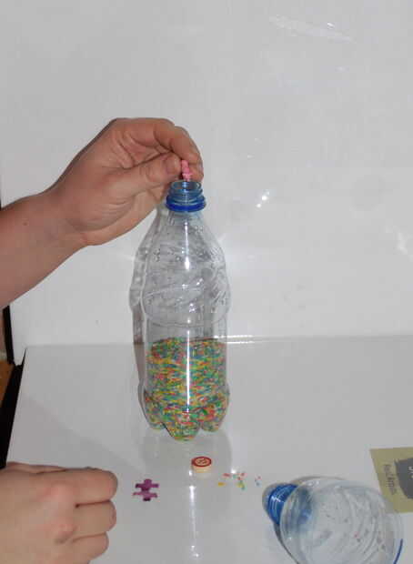 5. Asegúrese de que usted deje un espacio de aire en el cuello de la botella para permitir el arroz mover alrededor, cuanto mayor sea la separación más fácil será la búsqueda del tesoro.