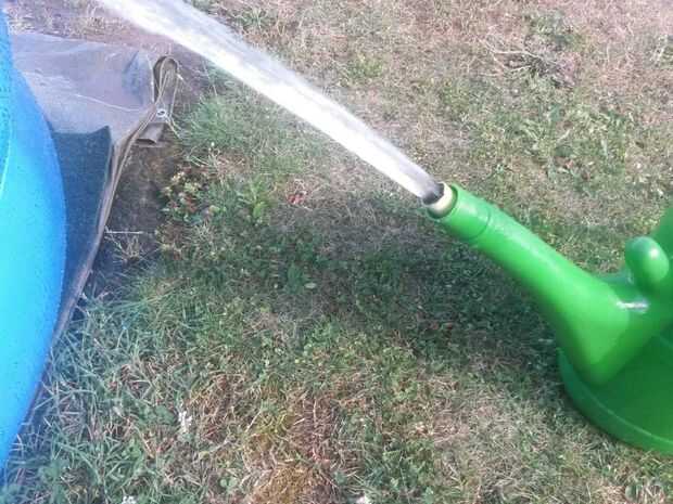 Einfach den Gartenschlauch durch die Einfüllöffnung en den Hals führen. Sollte der Schlauch rutschen, kann hombre diesen mit einer Wäscheklammer vorne fixieren.
