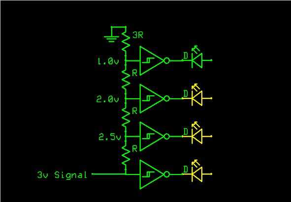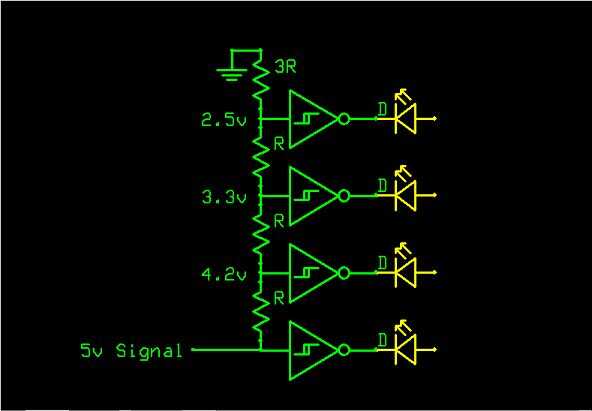 El único lado a esto es que la señal debe ser al menos 2.1V para encender los LED de abetos. Un pre amp