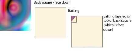Pone uno de la espalda sqares boca abajo y coloque un cuadrado de guata en la parte superior