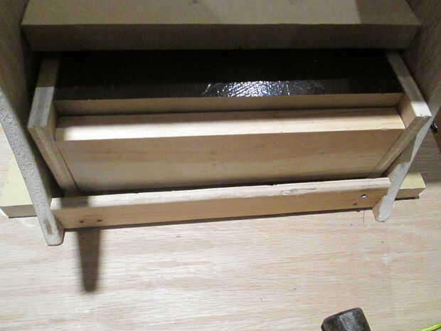 Se ha añadido una pieza adicional de HDF a la plataforma de diapositiva del cajón para máxima resbala-hacia fuera. Doblé en la parte delantera que le permanecen ocultos. Os adjunto con pasadores, pero también apoyo de la recta.