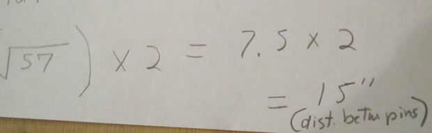 3. encontrar la raíz cuadrada de ese número y multiplicarlo por 2. Esto le da la distancia entre las dos clavijas.