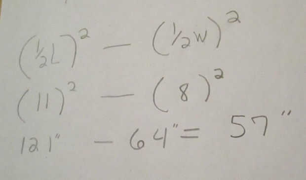 2. encontrar 1/2 de la longitud y cuadrado. A continuación parece la mitad de la anchura y la Plaza. Ahora resta el ancho de la longitud.