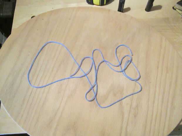 EL alambre es de 2,5 metros, así que corte un trozo de hilo de 2 metros y jugó con las formas hasta que pude llegar a nada mejor. (Quería algunos extra alambre sobrante a casa en el cajón. Acabé con unas pulgadas extras más allá de eso, por lo tanto la antena Q rizada... : D..)