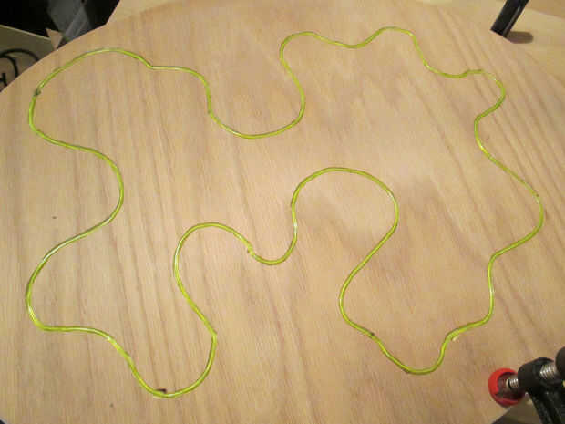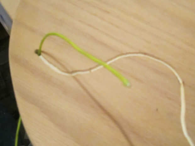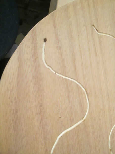 Taladré un agujero donde tenía sentido alimente el alambre hacia arriba y luego abajo, luego cerrar el lazo.