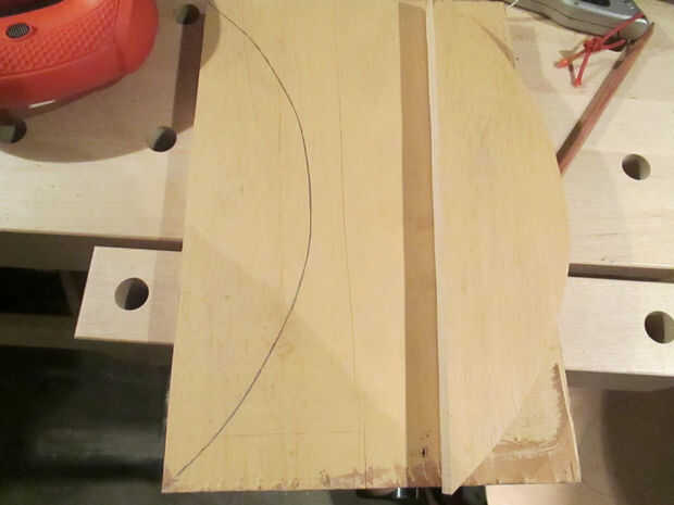 Yo corte dos rectángulos de la parte de desecho de la madera para las paredes laterales.