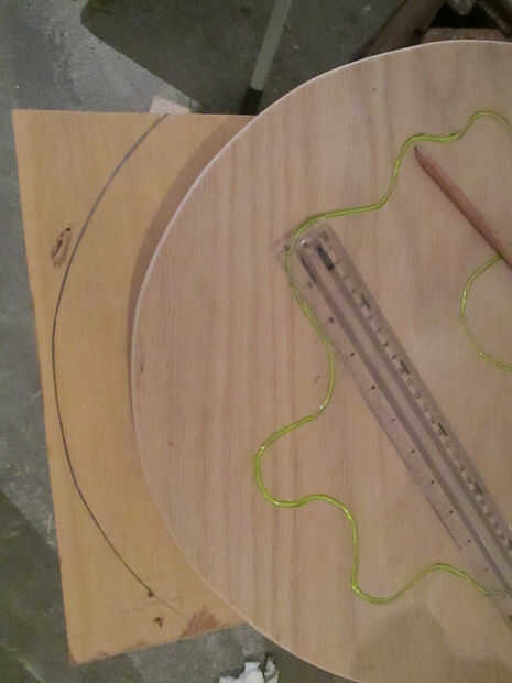 Luego trazó alrededor de la parte delantera de la elipse un perfil coincidente de mis frentes de los cajones. Sólo algunos pinos basura en mi madera desechos.