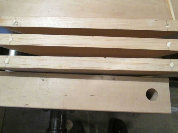 Originalmente iba a unir la descarga de los frentes de tres cajones y fijar a algún tipo de mando. Que no daría a la altura del cajón que pide, por lo que les espaciado aparte dio a esa altura, además, proporciona dos bonos adicionales de eliminar la necesidad de un tirón de cajón y da todo un look de estilo art deco, espacio-ecléctico.