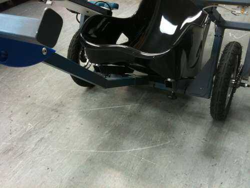 Luego agregue un tubo central para los dos patines desmontables. Patines son recomendados porque dejan un montón de roturas y accidentes. Realizamos los montajes de asiento ajustable para un punto de equilibrio, pero esto no es necesario. Solo montar el asiento en el centro.